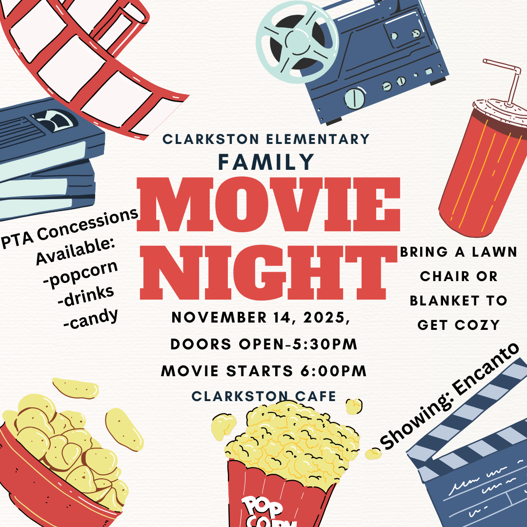 We can't wait for our annual Movie Night in the cafe! Bring your family, lawn chairs, and blankets and come watch the movie Encanto with us! We hope all of our families come out for this free event! PTA will have concession items available for purchase. Get there early to get a great seat--doors open at 5:30pm & movie starts at 6:00pm.